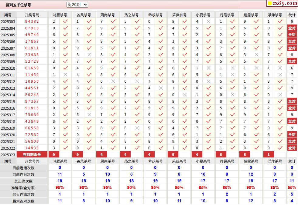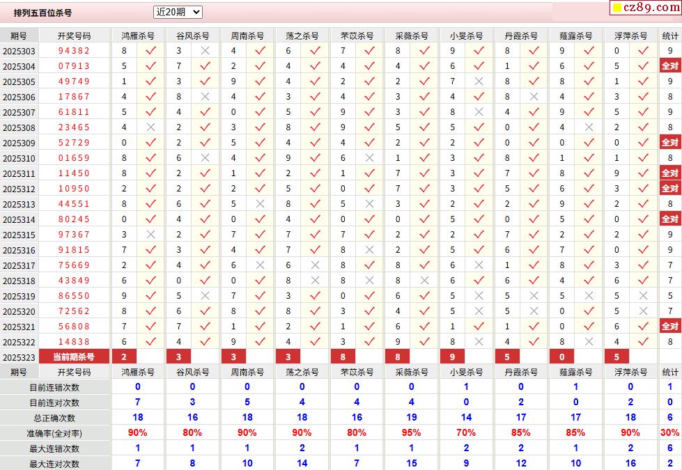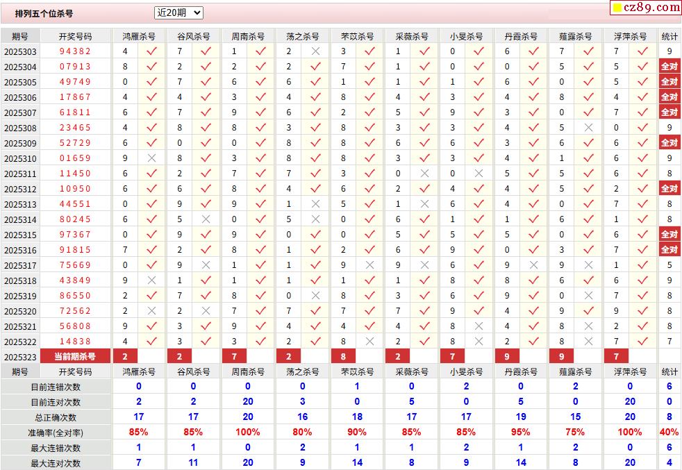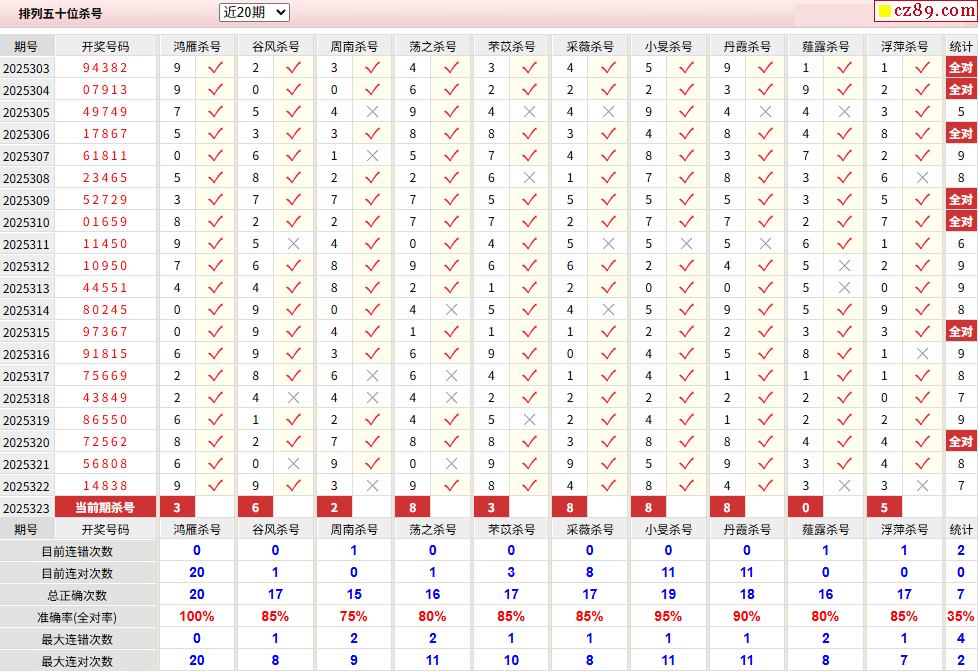 25年323期彩宝贝专家体彩P3杀号定码图表